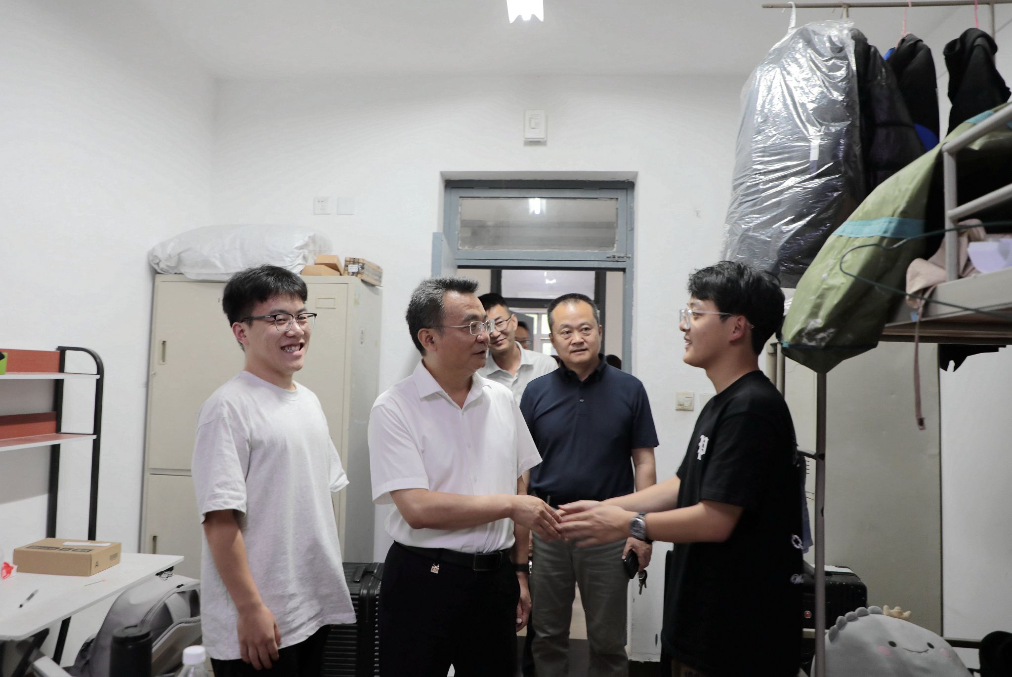 6月25日下午,黨委書記樊建武、黨委副書記李學(xué)軍帶隊(duì)深入學(xué)生公寓畢業(yè)生宿舍,走訪慰問并送別2025屆畢業(yè)生。