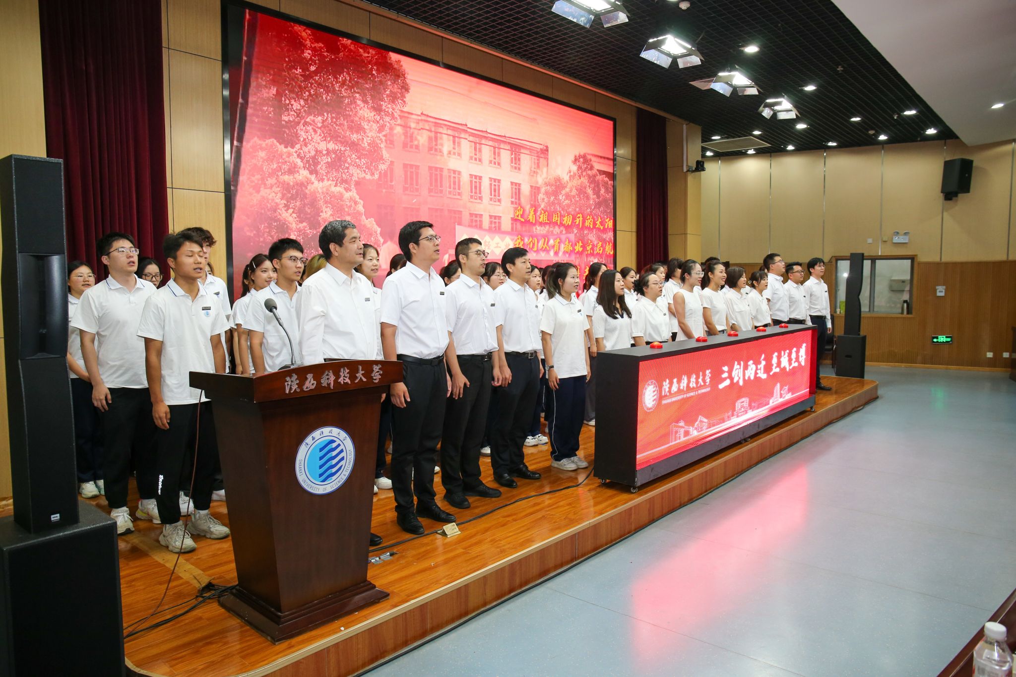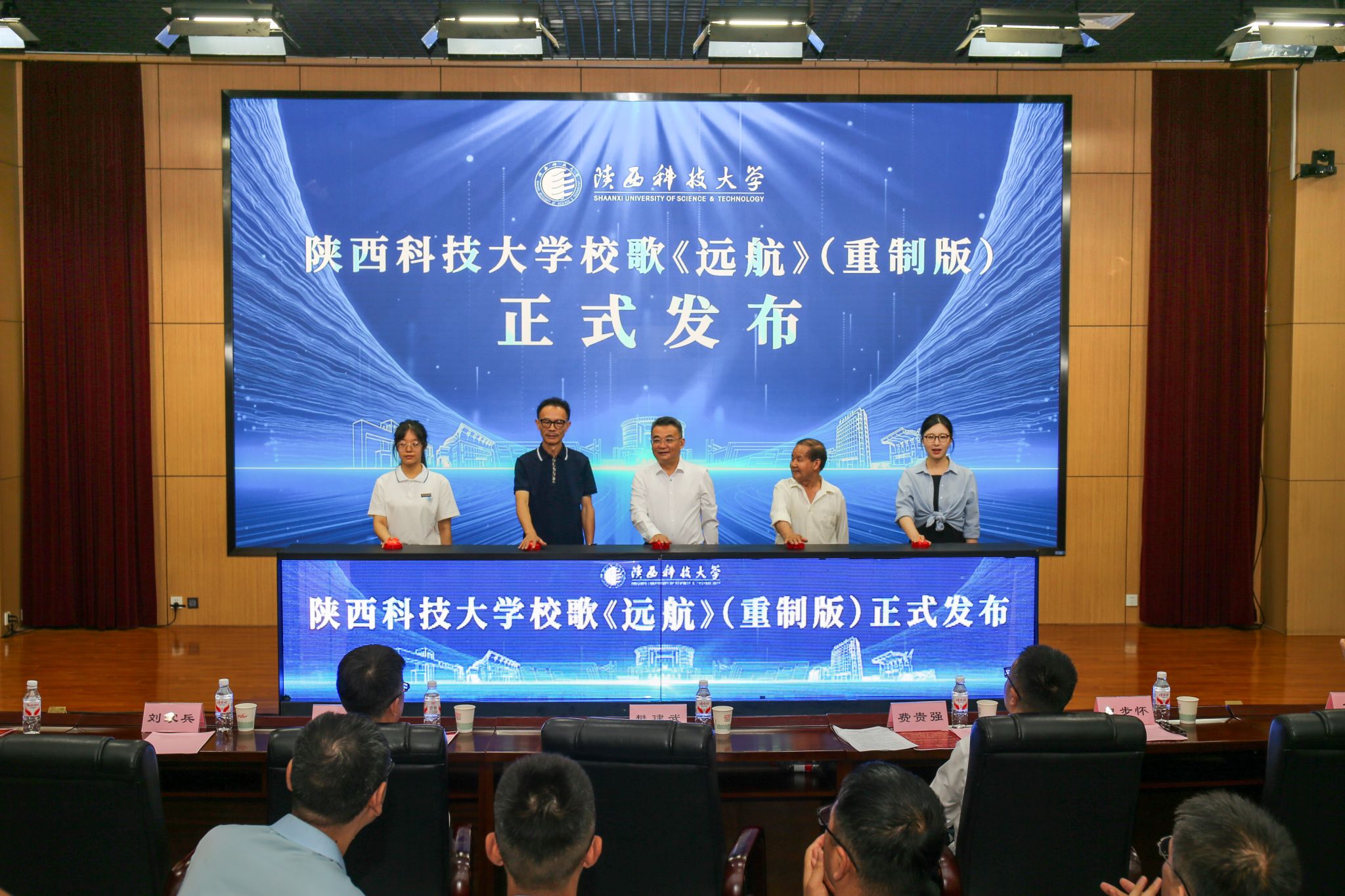 6月26日,慶祝陜西科技大學建校67周年暨校歌《遠航》(重制版)發(fā)布儀式在圖書館學術報告廳舉行,師生代表、離退休教師及校友代表等500余人齊聚一堂,用歌聲為校慶獻禮。儀式由黨委宣傳部部長李萌主持。
