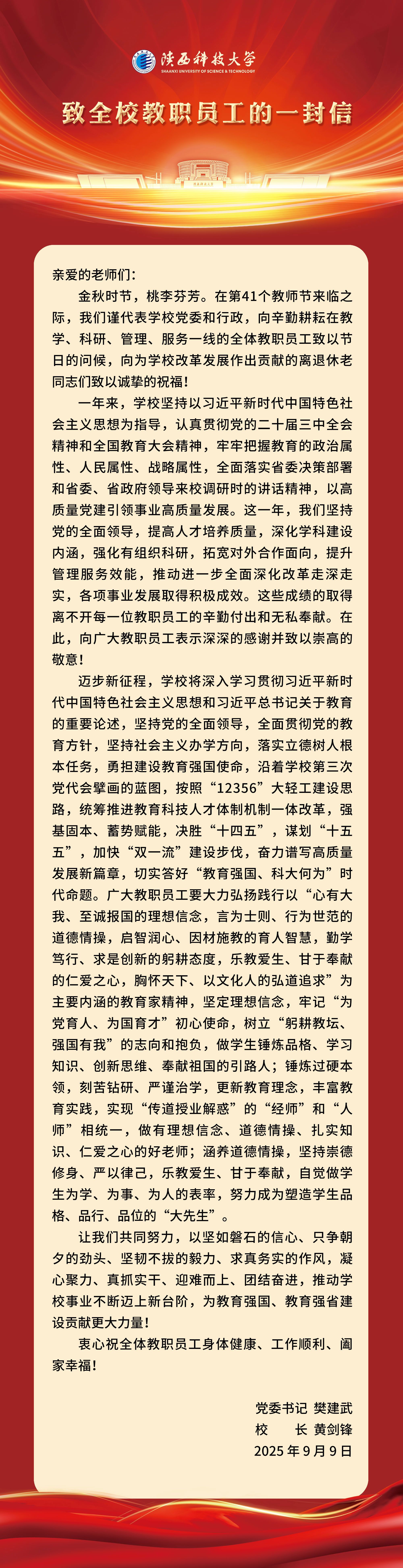 致全校教職員工的一封信