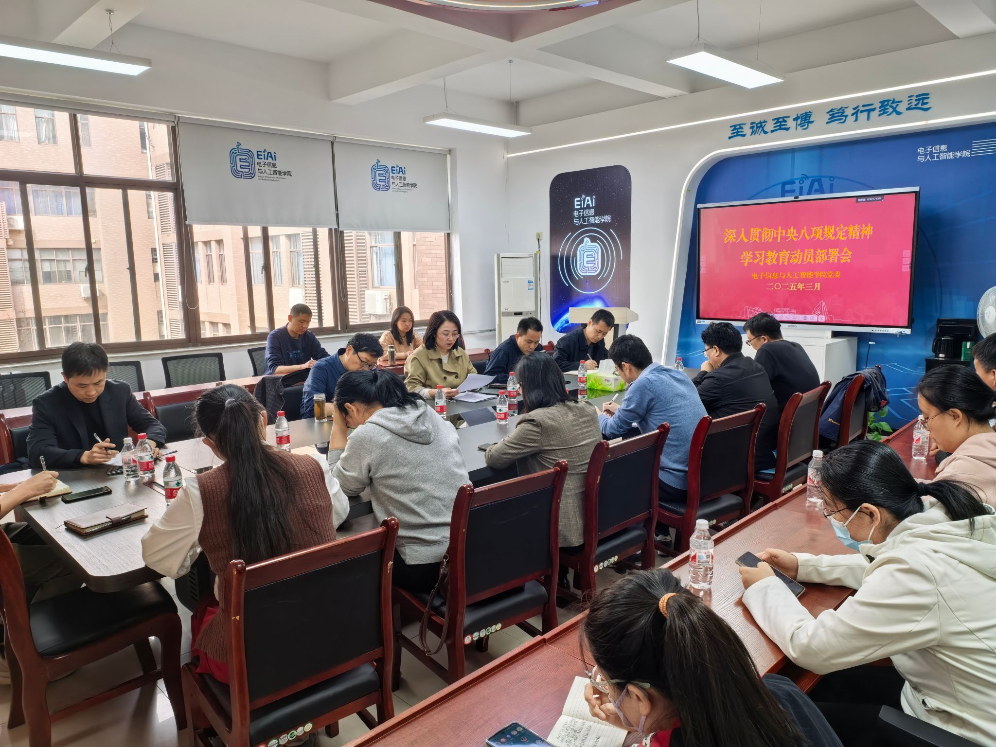 3月24日下午,電智學(xué)院召開黨委(擴(kuò)大)會議,對學(xué)院開展深入貫徹中央八項(xiàng)規(guī)定精神學(xué)習(xí)教育進(jìn)行安排部署。學(xué)院領(lǐng)導(dǎo)班子成員、黨委委員、紀(jì)委委員、教工黨支部書記、系主任、專業(yè)負(fù)責(zé)人、組織員、辦公室全體人員及師生黨員代表參加,院黨委書記呂文華主持會議。